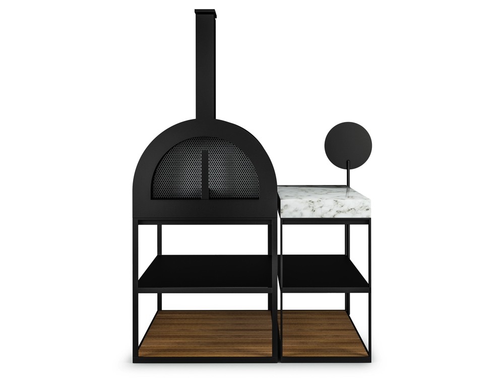 Отдельно обращаем внимание на печи-барбекю BBQ Wood Oven, с которыми можно отойти в итальянскую кухню, балуя гостей ароматной пиццей, а также экспериментировать с рецептами домашнего хлеба. Уличная печь сочетает в себе классические формы и современный минимализм. Как бонус — две секции с полками для дополнительного места для хранения.