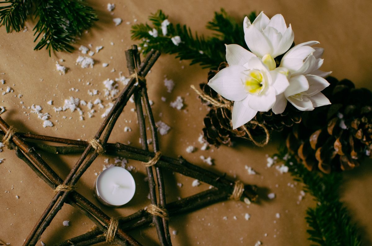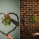 Для тех, кто прочёл наш материал до конца — приятный бонус. Смотрите какая простая «идея» украшает задний план. Короткие знатные прутья, связанные между собой толстой бечёвкой в точках соприкосновения, зажигают по задумке новую оригинальную звезду — Рождественскую. Повторить её — проще простого. Примите это за головоломку или объявите конкурс на корпоративе. Сам аксессуар хорош на двери и на праздничном столе.