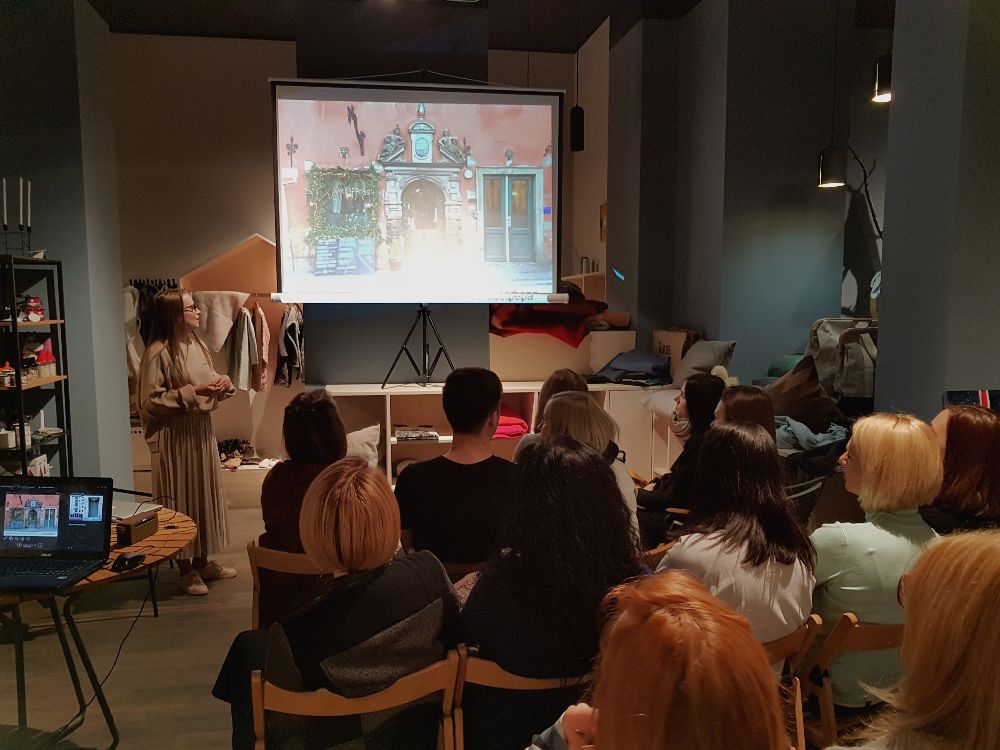 Катерина, как основатель и руководитель SVARTISEN и New Wave, начала лекцию и провела захватывающий экскурс по выставке для присутствующих дизайнеров и архитекторов. 2018 год празднует 60-летний юбилей икон скандинавского предметного дизайна от Арне Якобсена, что позволило нам развить тему и проследить явную отсылку современных трендов к направлению mid-century, что прослеживается в стилистике иртерьеров как молодых фабрик, так и легендарных производителей как например Fritz Hansen и Carl Hansen and Sons. Формы, линии и удобство предметов середины прошлого века остались вне времени и трендов и их образы часто звучат в самых свежих объектах. Также гости услышали историю новорожденного SVARTISEN, дом для которого, на сегодняшний день — салон в Киеве по ул. Большая Васильковская 114, где и прошло мероприятие. Стены оттенков ледника и стильные интерьеры в нордическом обличье максимально перенесли слушателей в северные края и хороший старт подхватили Сергей и Светлана из собственной студии DesignMe и дизайнерского тревел-бюро TravelMe.