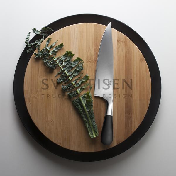 Елегантно розроблений кухонний інструмент від дизайнера Stig Ahlström. Дошка виготовлена з бамбука, що ламінує, яка спирається на кремнієве кільце. Це робить її стійкою поверхнею для подрібнення. Кільце також утримує м'ясні соки під час різання, що дозволяє вилити в каструлю рідину для приготування підливи.