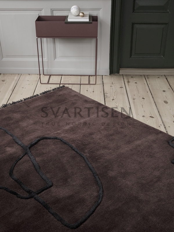 Модель вдохновлена песчаными дюнами, отсюда мягкость и плотность ворса. Минималистичный рисунок расположен асимметрично и образован за счет разной длины ворса. Цветовое решение в красно-коричневых оттенках выражает одновременно простоту и утонченность.