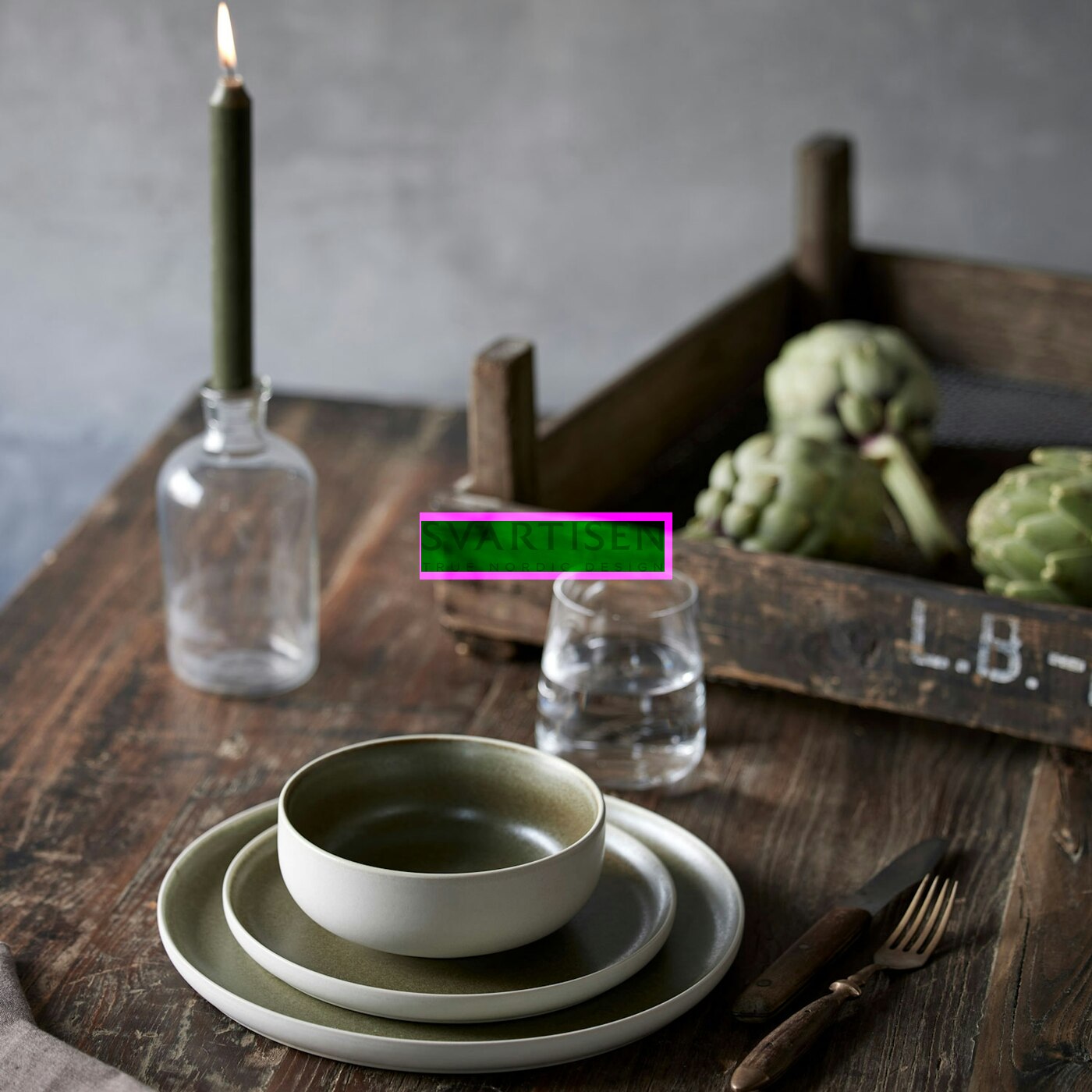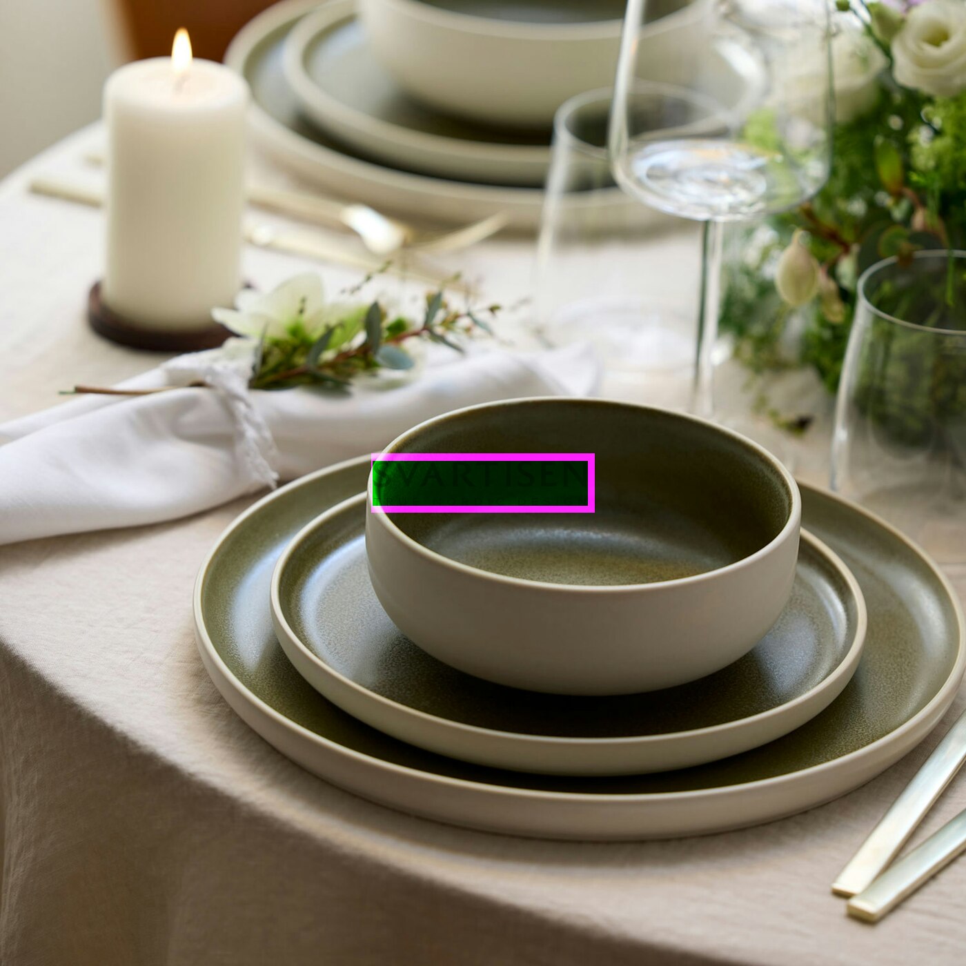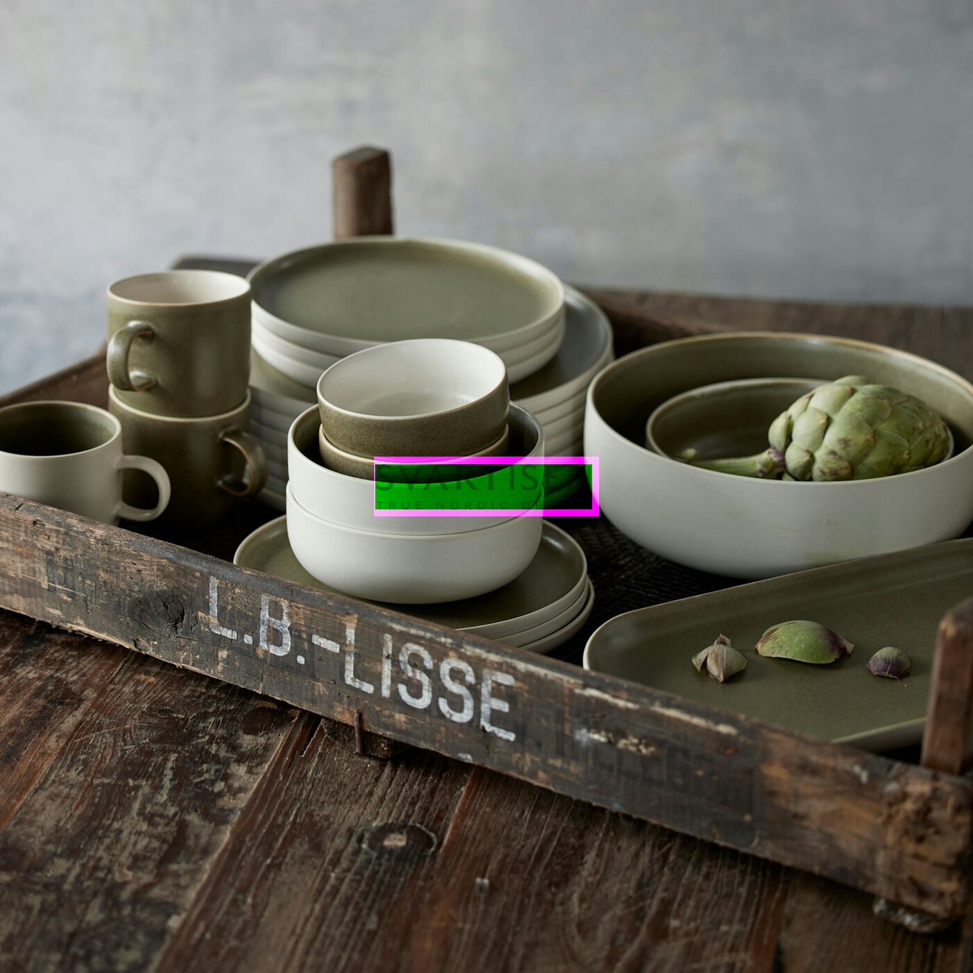 Набір посуду North (в комплекті: 4 тарілки 21см, 4 миски 15см, 4 чашки) Matte white/Matte moss