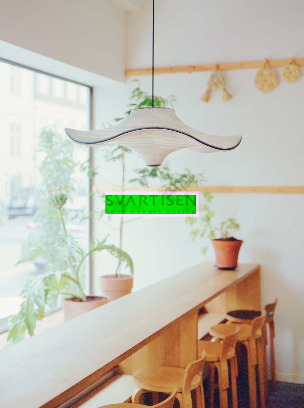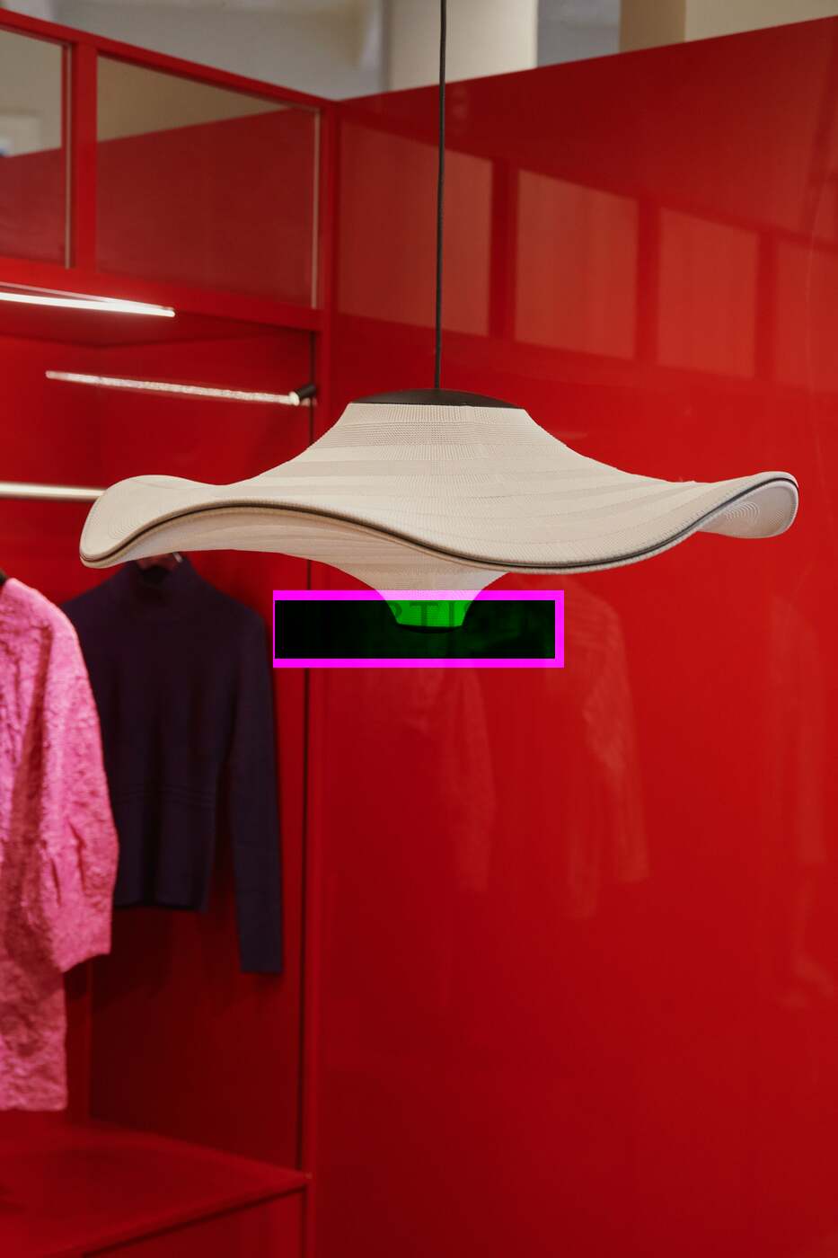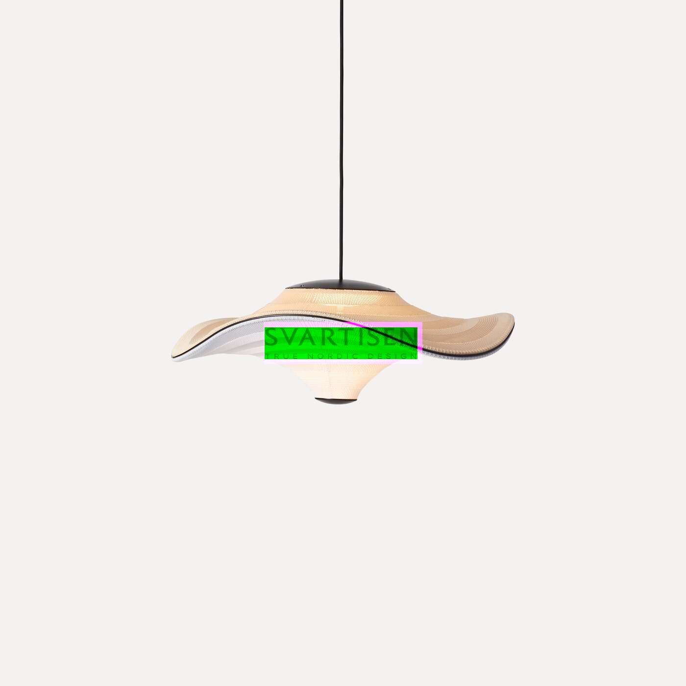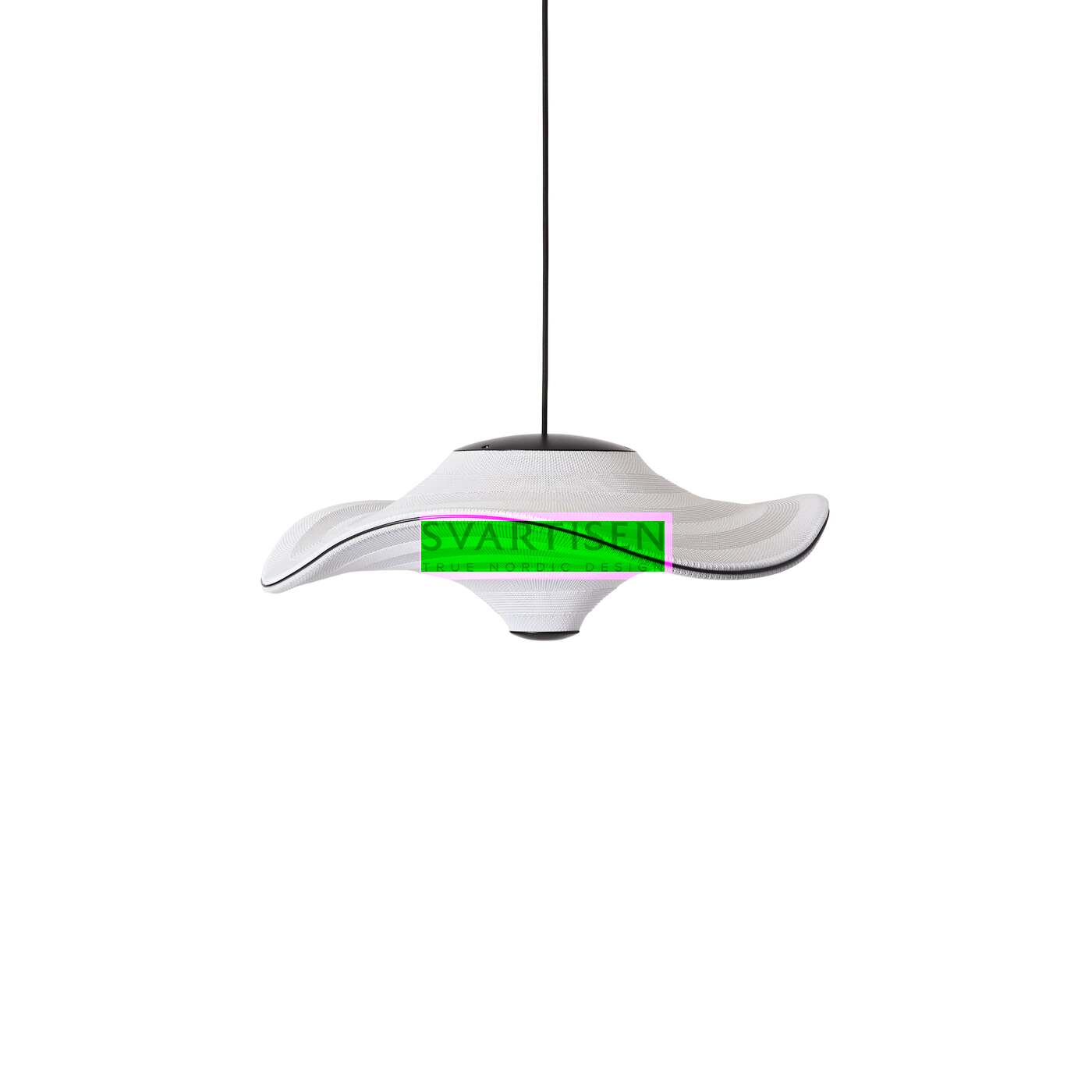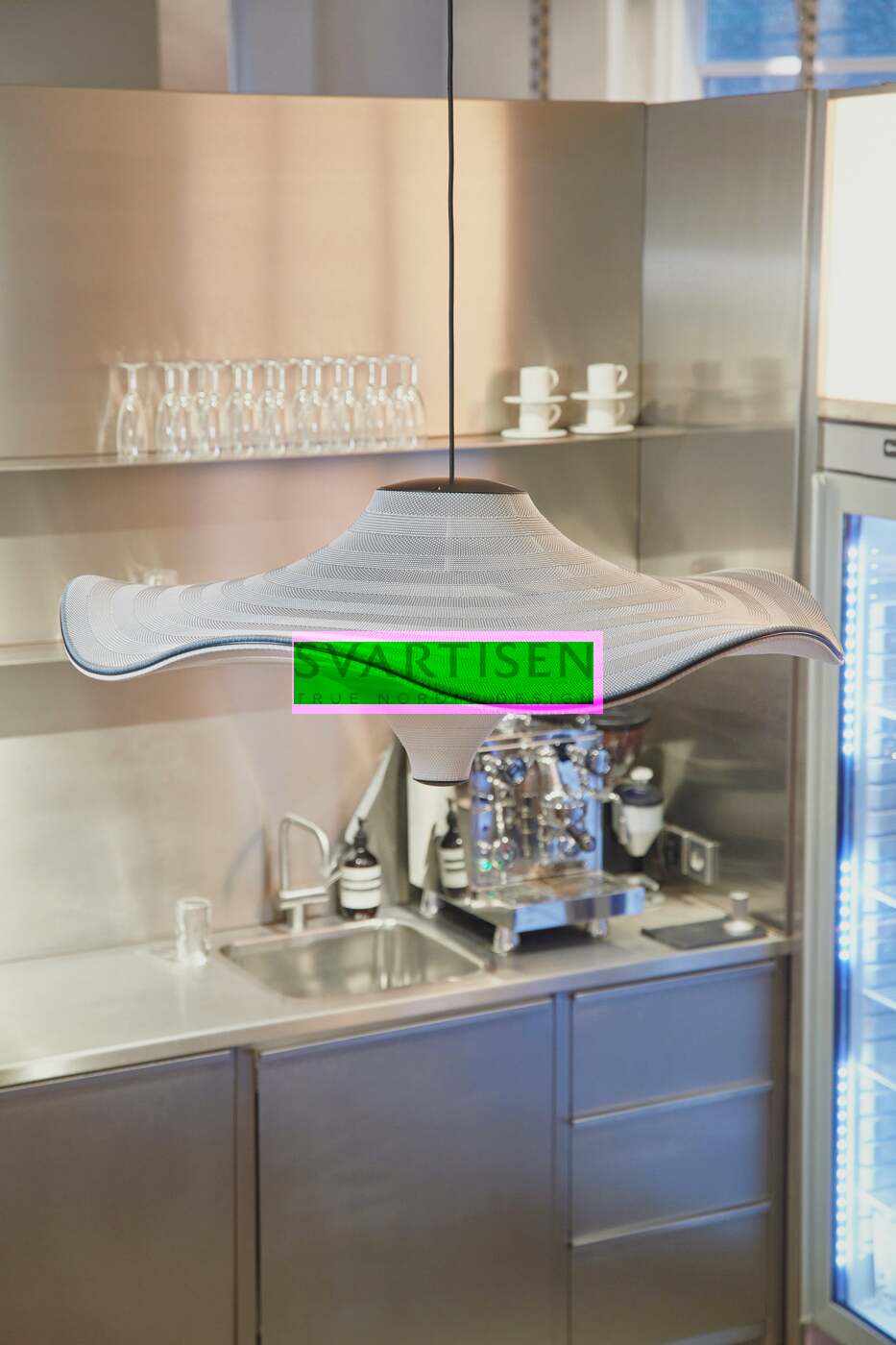 Flying - сімейство скульптурних підвісних світильників з м'якою органічною формою. У підвішеному стані вони ніби красиво парять у повітрі. Характерна форма Flying lamps створюється шляхом розтягування 3D-в’язаного матеріалу між алюмінієвою хвилястою рамою та центральною частиною, яка розділяє верх і низ. Світлодіодне джерело світла вбудовано у верхній частині лампи, тому світло м’яко розсіюється через трикотажну нижню частину лампи.