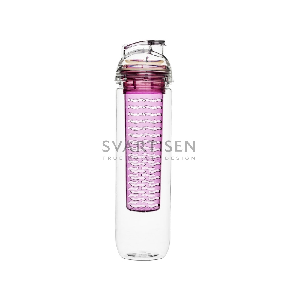 Пляшка Sagaform для свіжих напоїв. Завдяки подвійній конструкції, можна урізноманітнити напій, помістивши в додаткову ємність фрукти, м'яту або інші добавки, і залити водою мікс. Практично та смачно брати із собою в дорогу.