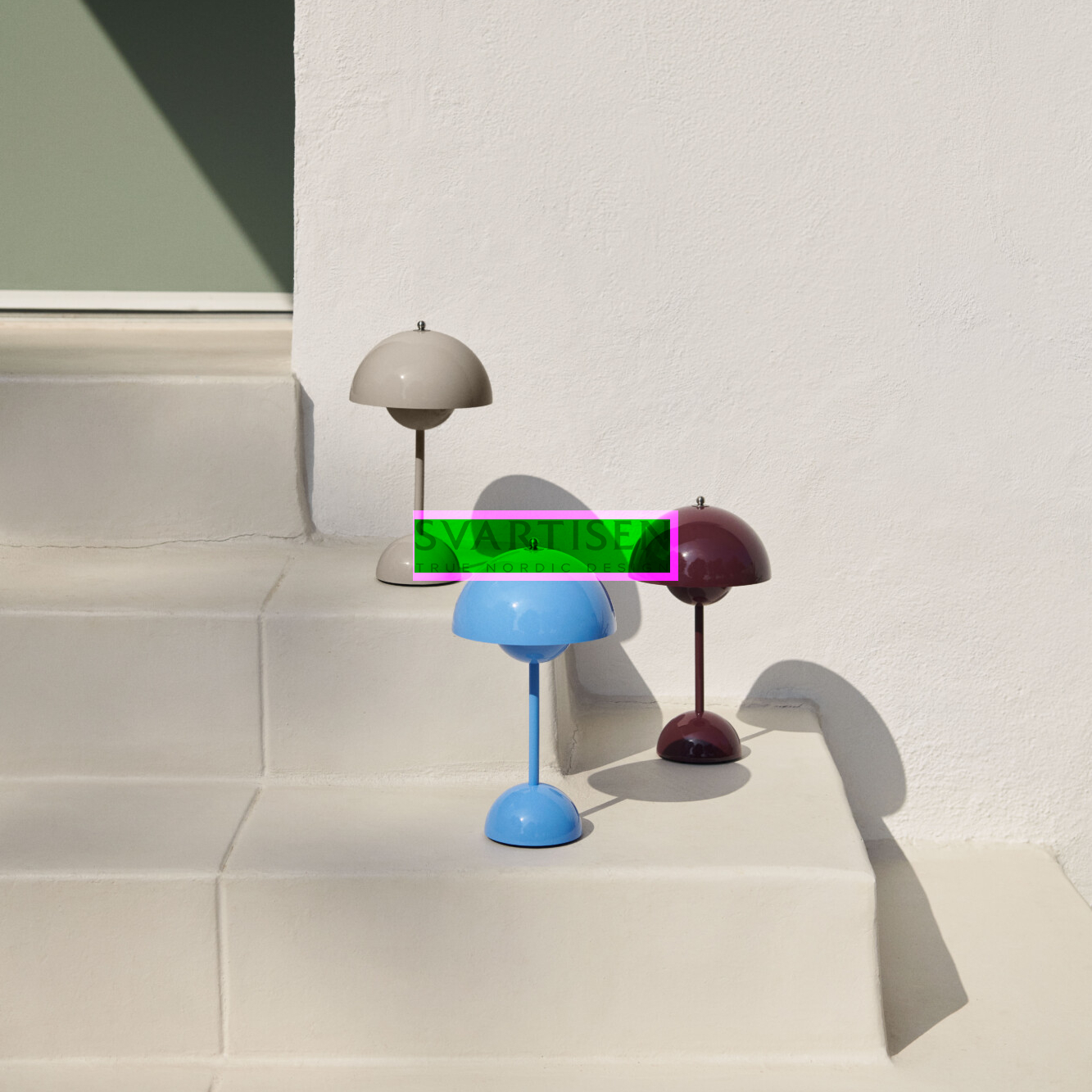 The Flowerpot, яскравий світильник із закругленою підвіскою, що звисає з напівкупольного верхнього плафона, втілює експериментальний підхід Вернера Пантона. Трохи менший за розміром, ніж версія настільної лампи, і навмисно легкий, портативний VP9 оснащений USB-кабелем для зарядки. Він доступний у широкому діапазоні сучасних кольорів і створить затишну атмосферу в приміщенні та на вулиці.