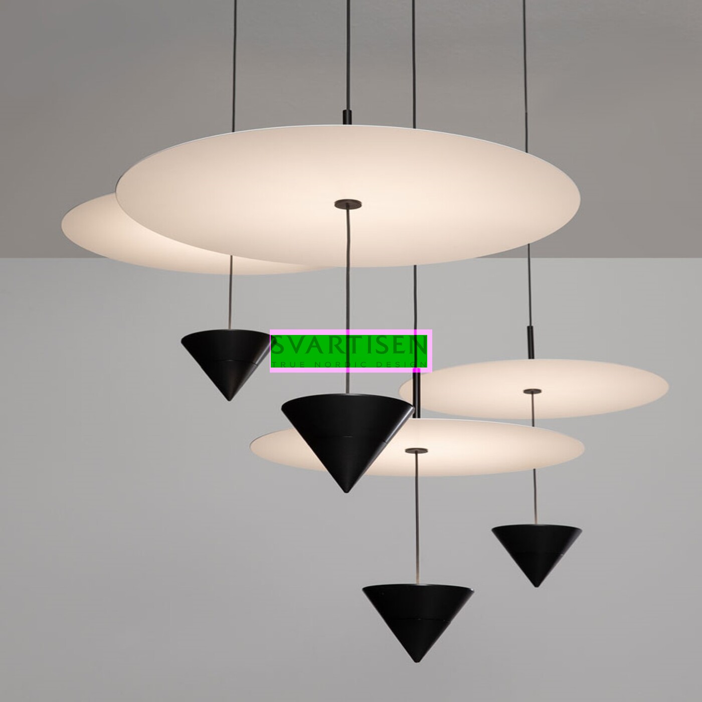 Stralunata - це колекція підвісних світильників з алюмінієвою чорною рамою та білою пластиною. Цей сучасний світильник з каталогу італійського бренду Karman. Бренд використовує високоякісні матеріали, поєднуючи сучасність і традиції з амбітними навичками, щоб створити його привабливість.
