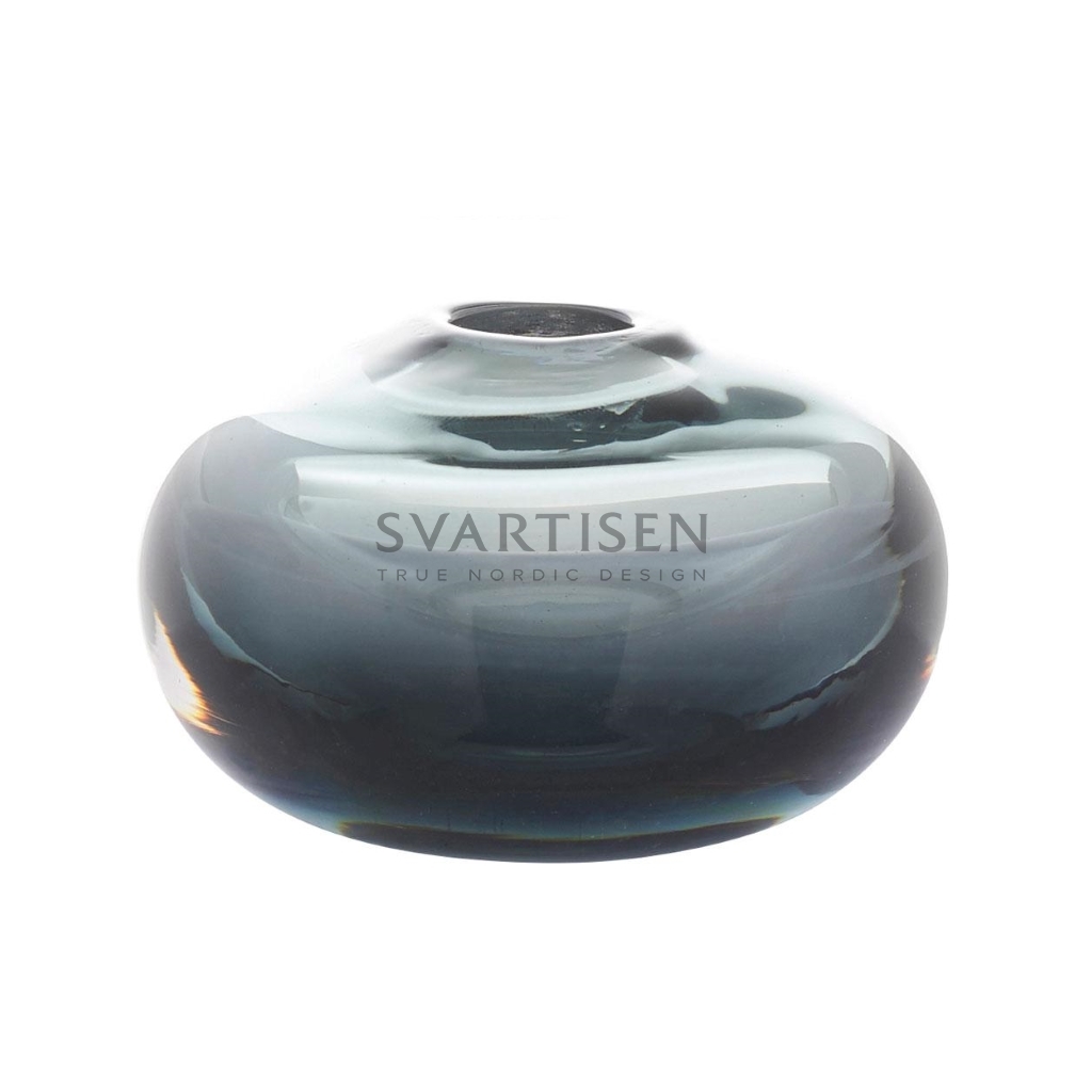 Низкая стеклянная ваза в красивейшем антрацитовом сером цвете удивляет своей мощностью в прямом смысле этого слова: она вовсе не портит ощущение лёгкости. Протирать нужно влажной тряпкой. Поставляется в подарочной коробке.