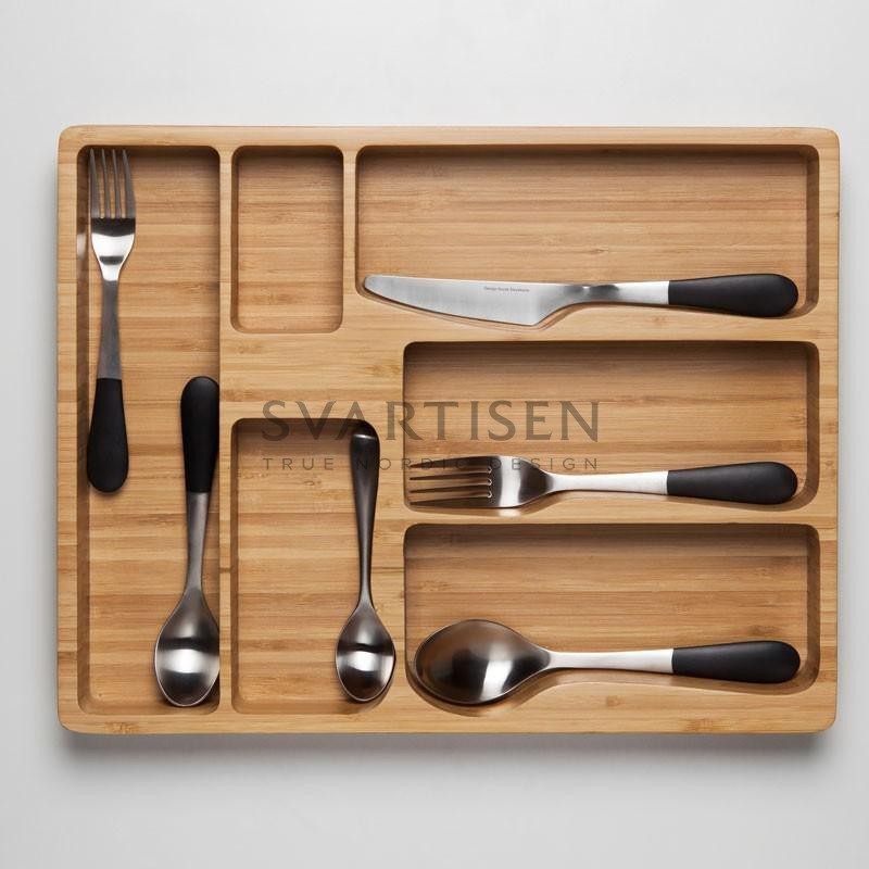 Колекція столових приладів Stockholm – це комбінації матової полірованої нержавіючої сталі та гладких чорних ручок. Тактильні характеристики матеріалу та відчуття від інструментів у руці без сумнівів сприяє враженню від трапези. Розроблено володарем ступеня у галузі інноваційної інженерії Jesper Ståhl.