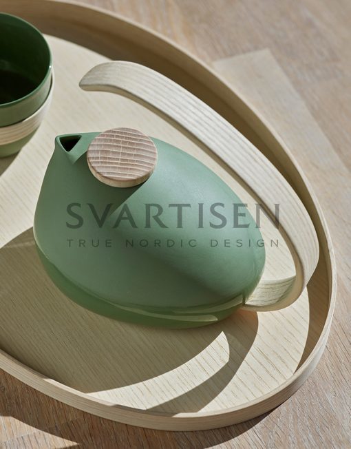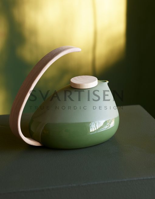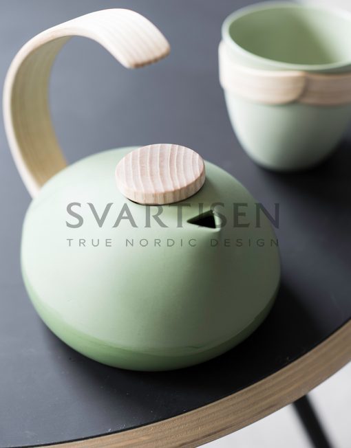 Чайник из твёрдого фарфора разработан в сотрудничестве с Erlend Søderlund, который специализируется на формовании древесины с использованием пара. Продукт норвежского производства несёт с собой историю лыжной фабрики, где сегодня расположена мастерская MENT: техника, которую Эрленд применяет, чтобы согнуть ручку чайника, это тот же процесс, который использовали для сгибания носка лыжи.