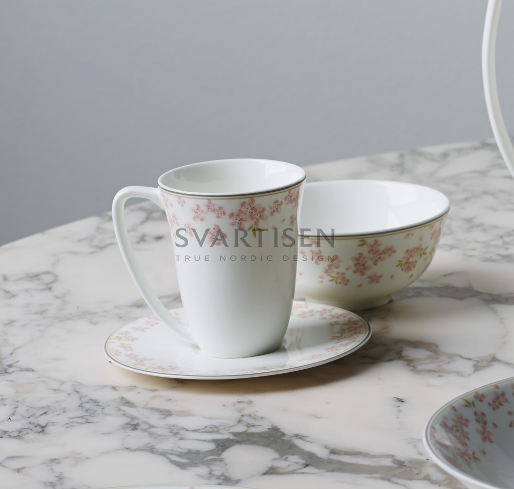 SLAPE ROSA — это первые цветения, после долгих морозов на хрупкой, но прочной посуде из костяного фарфора. Дорогой блеск и шикарная глянцевая глазурь не могут не привлечь внимание к утончённому сервизу.