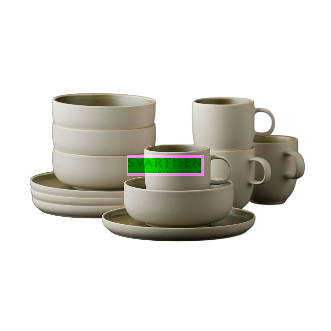 Набір посуду North (в комплекті: 4 тарілки 21см, 4 миски 15см, 4 чашки) Matte white/Matte moss