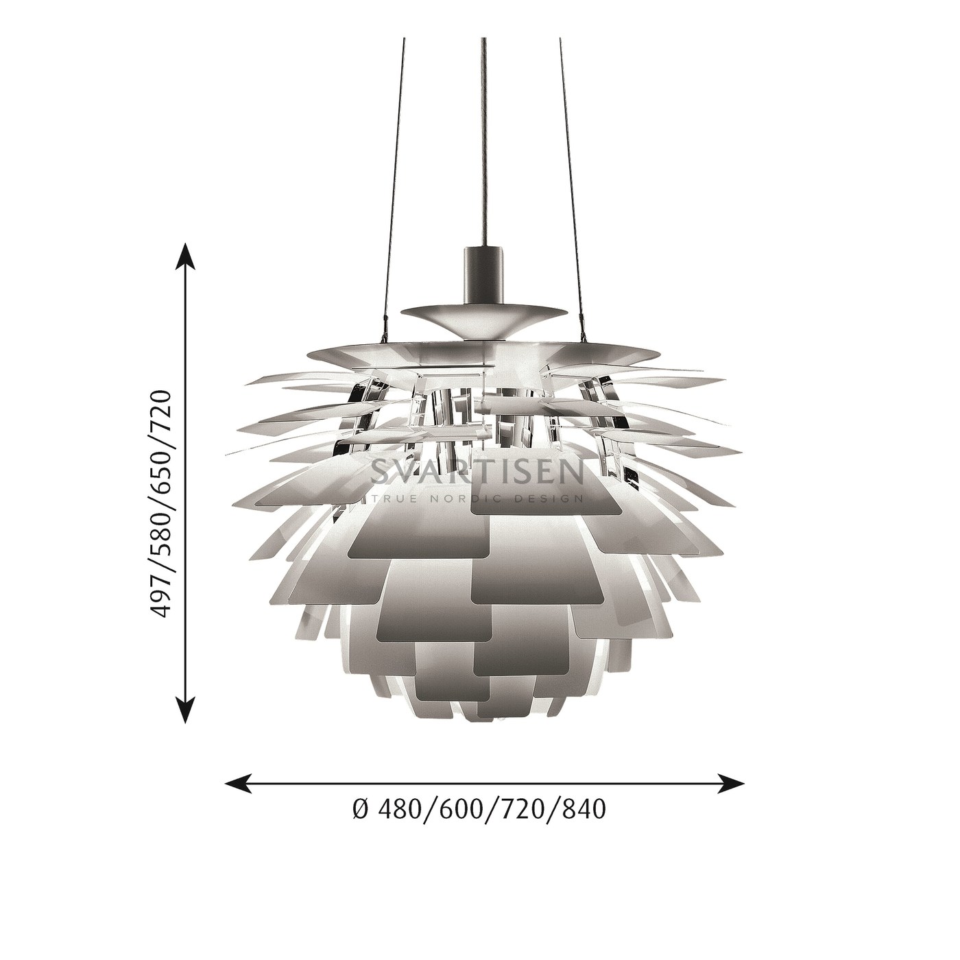 Светильник обеспечивает 100% бесцветного света. 72 точно расположенных листьев образуют 12 уникальных рядов, по 6 листьев каждый. Они освещают светильник, а также излучают рассеянный свет с уникальным рисунком. Светильник обеспечивает как декоративное, так и умное освещение. От Poul Henningsen.