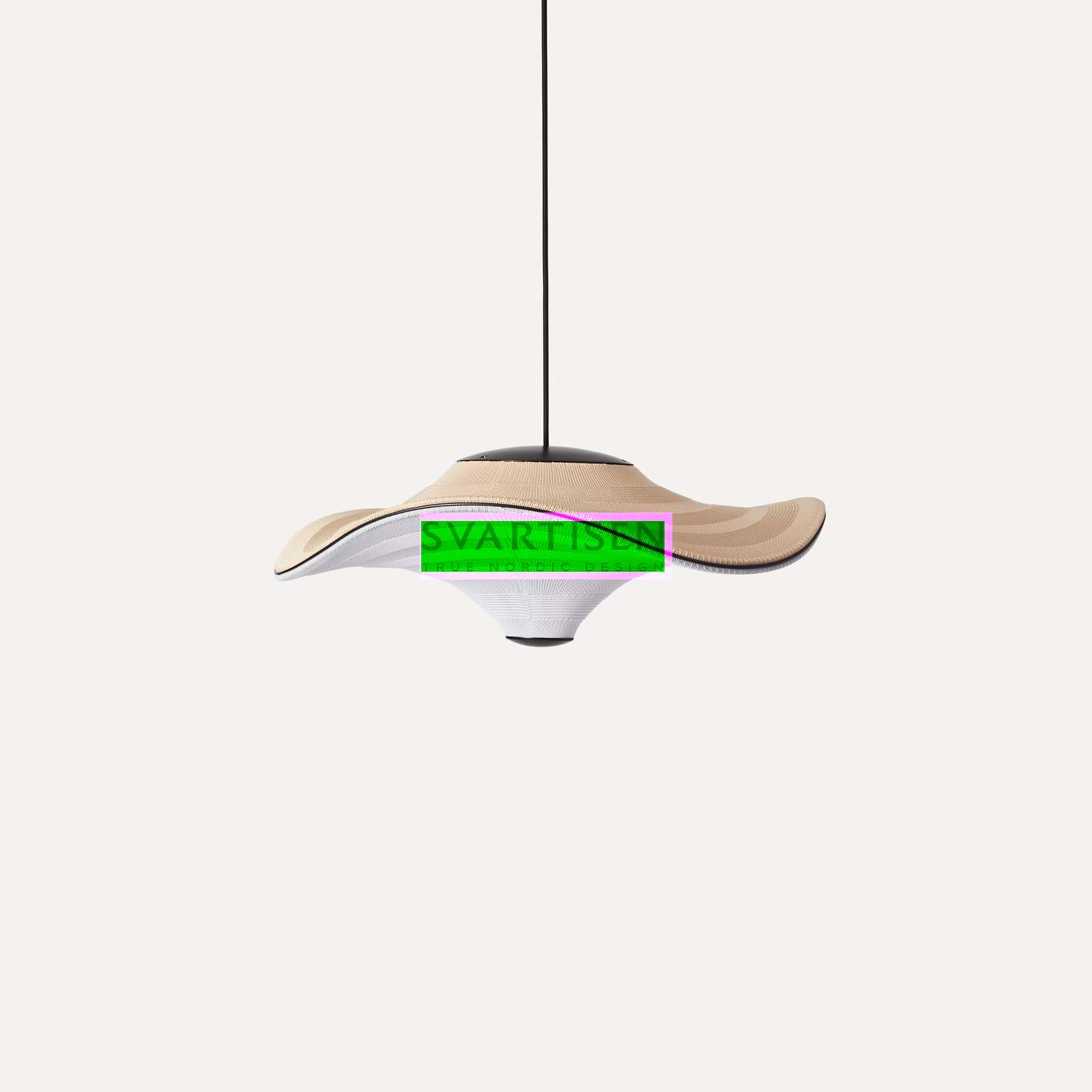 Flying - сімейство скульптурних підвісних світильників з м'якою органічною формою. У підвішеному стані вони ніби красиво парять у повітрі. Характерна форма Flying lamps створюється шляхом розтягування 3D-в’язаного матеріалу між алюмінієвою хвилястою рамою та центральною частиною, яка розділяє верх і низ. Світлодіодне джерело світла вбудовано у верхній частині лампи, тому світло м’яко розсіюється через трикотажну нижню частину лампи.