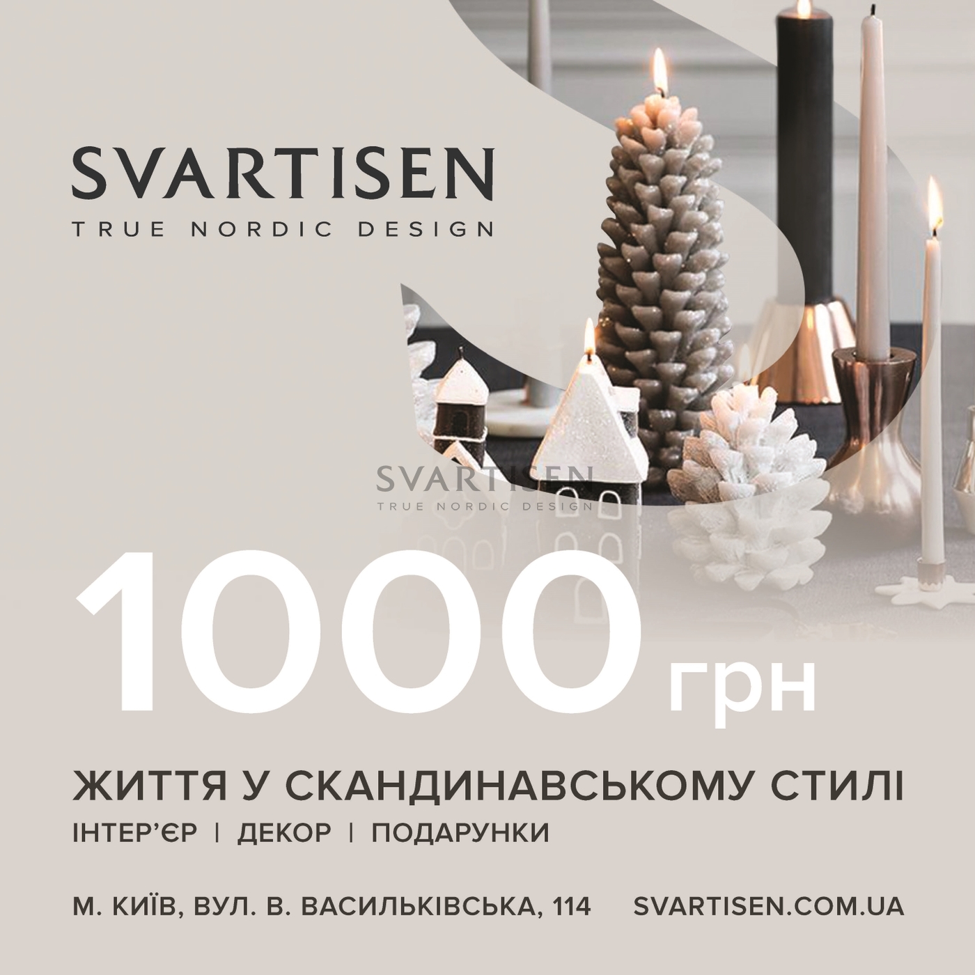 Коли людина не знає, чого хоче, і коли не знаєш, чого хоче людина, ідеальний вибір — спеціальний сертифікат SVARTISEN. Подарункова карта краще, ніж «гроші теж подарунок» і краще подарунка, в якому немає впевненості на всі сто. Допустимі номінали — 1000, 2000, 3000 та 5000 грн і, як ідея, комбінації з них.