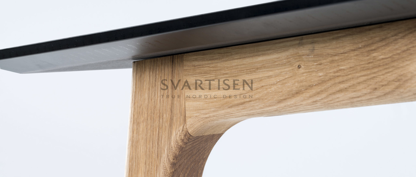 Ножки цельной древесины сочетают в себе качество и изысканную легкость. Их размещение обеспечивает достаточное пространство для стульев вокруг . Стол GATE от Henrik Pedersen поставляется в трех разных размерах, со столешницей в ламинате или линолеуме с черными окрашенными/ обработанными маслом дубовыми краями. Ножки — в промасленном дубе или черной окрашенной золе.